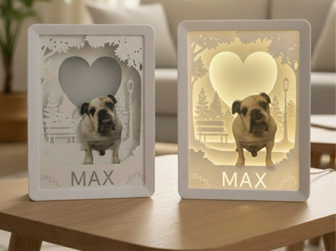 Turn your pet’s photo into a unique 3D LED portrait that lights up any space with warmth and love.
